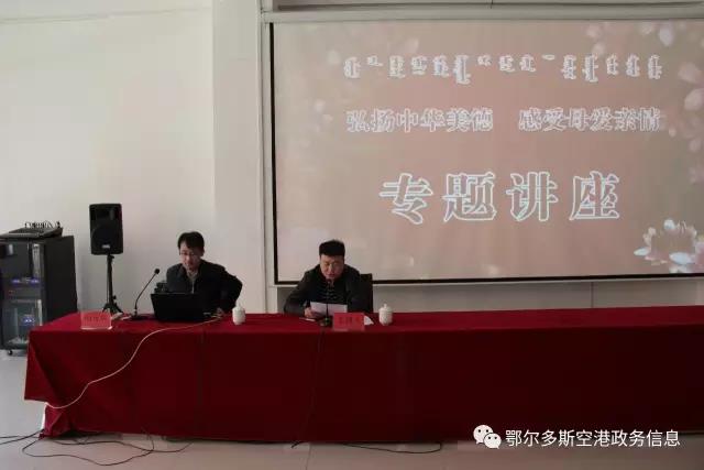 5月12日,在第104个母亲节来临之际,为号召园区及机场全体干部职工崇德修身,不忘父母之恩,园区组织开展了“情怀五月,崇德修身,感恩母亲”主题系列活动。 活动邀请内蒙古党校尚传斌教授,就“加强党员干部道德修养,提升干部职工道德境界”这一主题进行了讲解,尚教授以生动的事例和富有激情的感召力,为广大党员干部把好崇德修身的“方向盘”,与会人员反映强烈;活动还邀请到了鄂尔多斯市道德模范田文联、哈斯塔娜、尚建丽与广大干部职工进行了现身互动,三位道德模范以自己的亲身经历,讲述了发生在自己身上的感人事迹,给园区全体干部职工上了生动的一课。