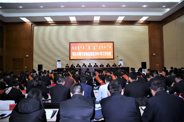1月31日,鄂尔多斯空港园区2018年工作会议在园区管委会一楼多功能厅召开。园区党工委书记刘建东讲话。园区党工委副书记、管委会主任边东主持会议并总结讲话。园区党工委管委会领导班子成员,机场集团公司有关领导出席会议。