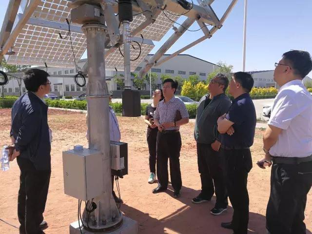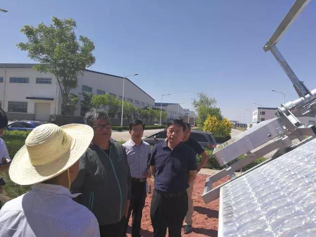 ?? 杨爱明对高倍聚光太阳能发电装置产品情况、技术指标、发电量及项目整体推进等情况向杜强一行进行了详细介绍。??